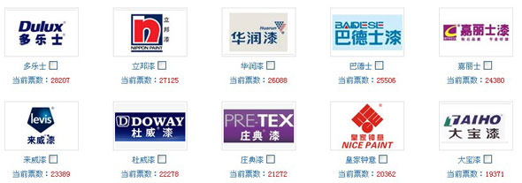 此次參加皇家鐘意涂料品牌投票活動的其他涂料品牌有:
