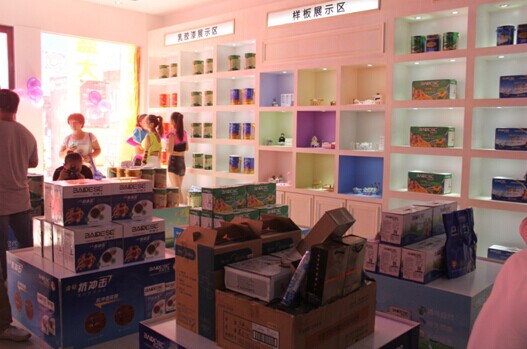 巴德士漆品牌體驗館內(nèi)整齊的產(chǎn)品陳列