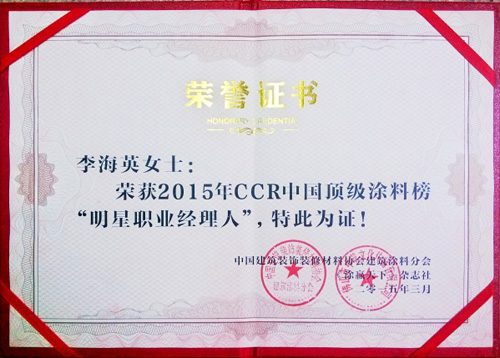 3月14日,備受涂料界關注的北京“2015中國國際涂料周”CCR中國頂級涂料榜揭曉了20位明星職業經理人,巴德士集團營銷總監李海英女士位列其中。
