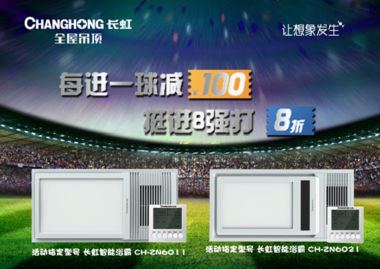 長虹全屋吊頂事業(yè)部積極響應(yīng)總部支持比利時國家隊(duì)的號召,強(qiáng)勢發(fā)出“每進(jìn)一球減100 ,挺進(jìn)八強(qiáng)打8折”的宣言!在世界杯期間,只要比利時隊(duì)進(jìn)球越多,消費(fèi)者在購買長虹產(chǎn)品時優(yōu)惠就越多!
