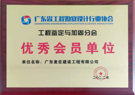 同時(shí),作為省勘協(xié)工程鑒定與加固分會(huì)的一員,麥臣科技一直積極參加協(xié)會(huì)活動(dòng),大力協(xié)助協(xié)會(huì)工作,自覺履行會(huì)員職責(zé)與義務(wù),是協(xié)會(huì)開展業(yè)務(wù)工作的中堅(jiān)力量。憑借扎實(shí)的經(jīng)營(yíng)理念、多年來對(duì)行業(yè)和社會(huì)的卓越貢獻(xiàn),以及在抗震加固事業(yè)上的堅(jiān)持與付出,麥臣科技被授予“廣東省工程勘察設(shè)計(jì)行業(yè)協(xié)會(huì)工程鑒定與加固分會(huì)優(yōu)秀會(huì)員單位”榮譽(yù)稱號(hào)。