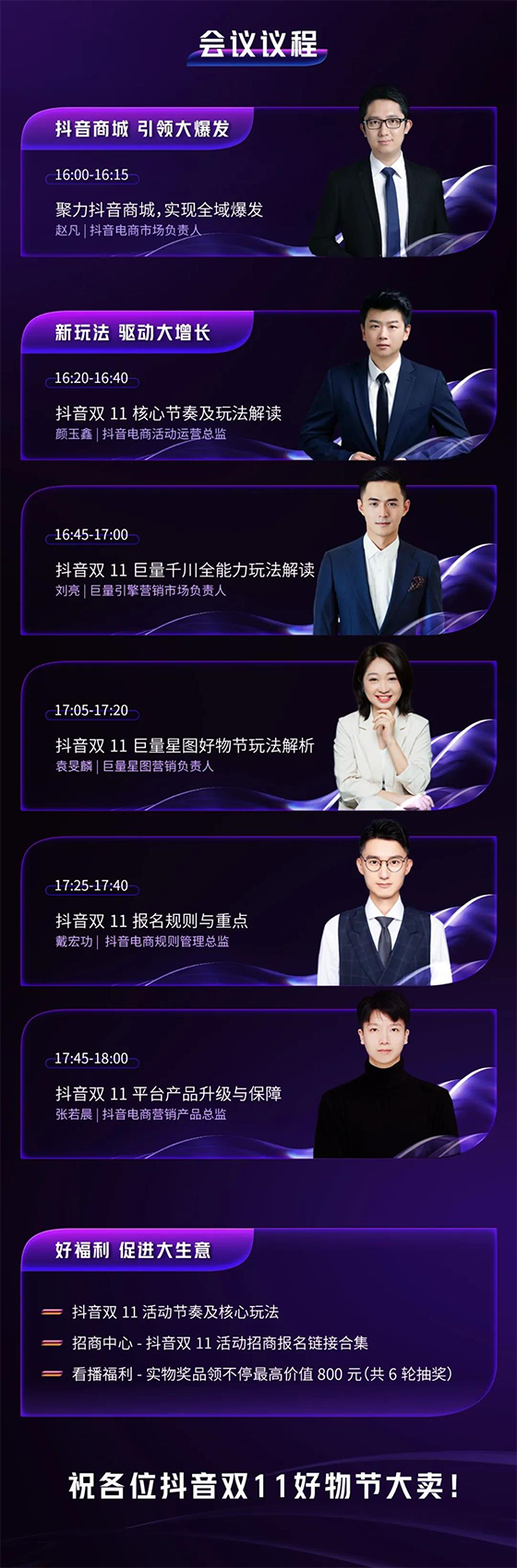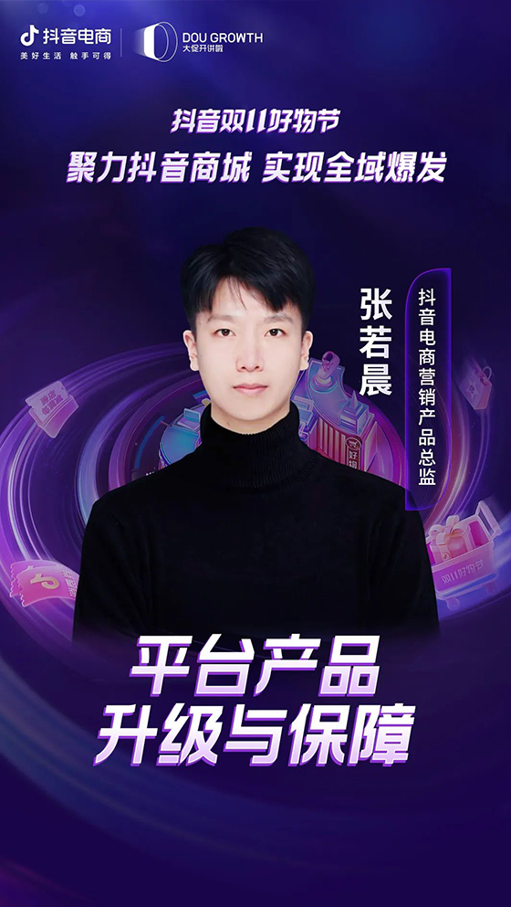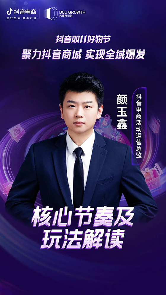 面對行業關注的諸多焦點,在本次招商會,抖音電商市場負責人趙凡將率先帶來以「聚力抖音商城,實現全域爆發」為主題的分享。結合雙11期間的營商環境和當前抖音電商業務數據,他將闡釋抖音電商對經營提升的價值;同時,從實例出發,講解如何做好抖音電商內容場、中心場的協同,助力商家們“順勢而為”。