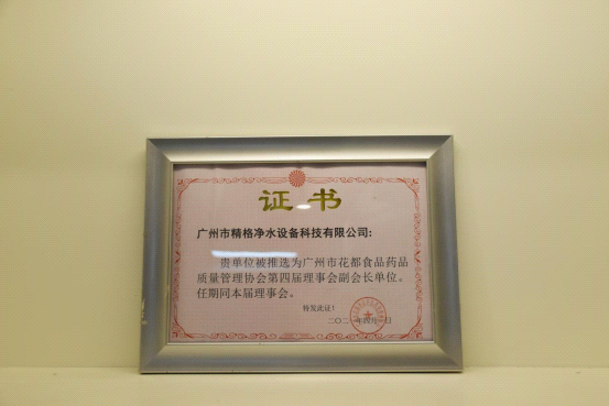 2021年4月1日,經由廣州花都食品藥品質量管理協會審議通過,精格管道直飲水被推選為“第四屆理事會副會長單位”。