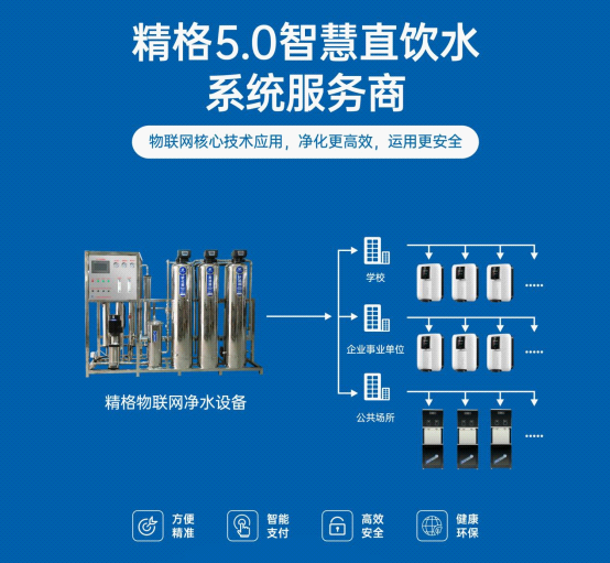 精格日前發布的5.0智慧直飲水系統,實現了在線遠程運營、設備故障事前預知、濾芯狀態監控、水質監控、水質大數據分析等功能。其中,物聯凈水技術的創新應用,為用戶提供了集健康、安全、智能、便捷于一體的用水體驗。