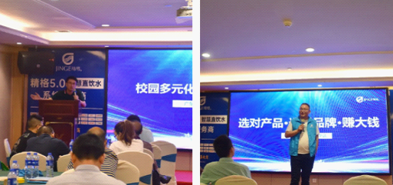 精格邀請到優秀的客戶代表——千萬級校園BOT投資商在項目中成功的經驗進行分享,依托校園直飲水項目,發展到校園生態項目的運營,實現利潤更大化。在一番激動人心的演講后,現場的家人們紛紛對精格的未來充滿期待與向往。