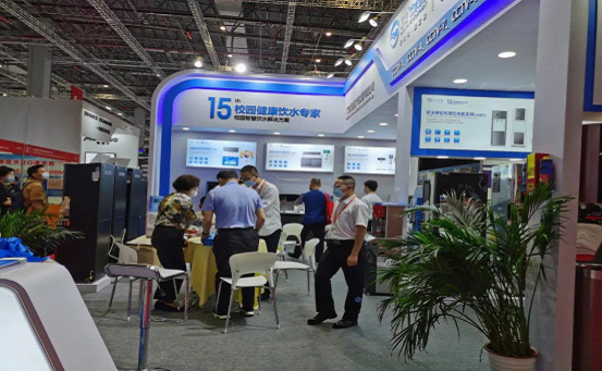除了靚麗的飲水設備之外,艾龍的校園智慧飲水解決方案更是現場的一大重頭戲,不少現場觀眾饒有興致地前來了解:云物聯系統、在線水質監測……對于他們的問題,現場的艾龍精英們一一作答,為大家充分解惑,我們也為想進一步了解更多的觀眾朋友進行了實地演示。