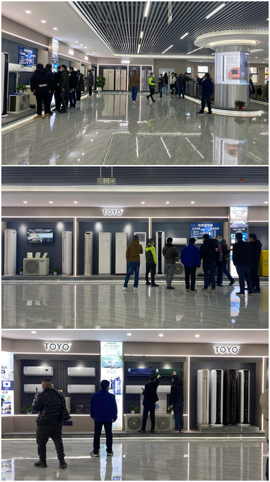 進(jìn)入二期一樓展廳,廣東核心經(jīng)銷商不約而同地發(fā)出陣陣贊嘆,精美的TOYO東洋空調(diào)產(chǎn)品深深地吸引他們。在認(rèn)真聽講李總監(jiān)介紹的同時,他們紛紛拿出手機(jī)拍照留念,永久記錄下公司產(chǎn)品的獨特之處。