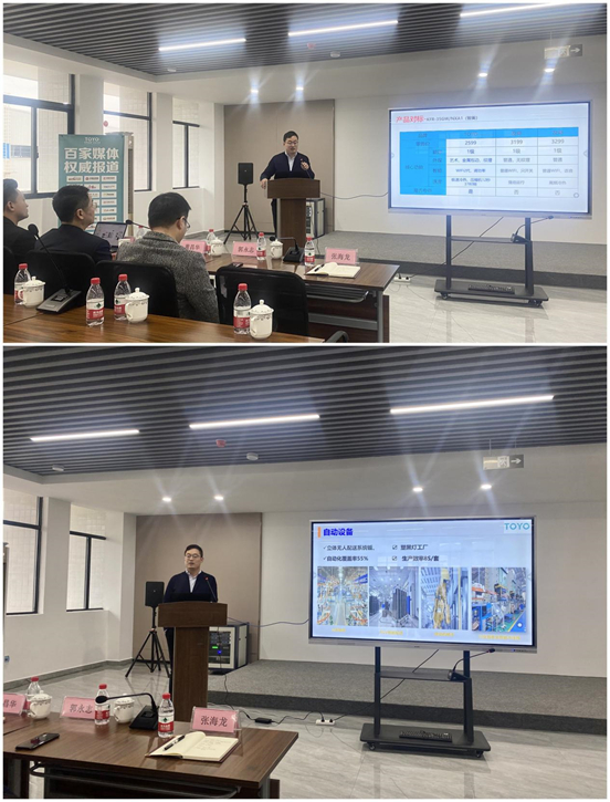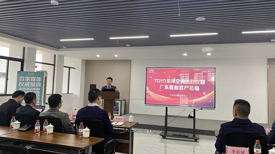 “TOYO-從此不同”2022年TOYO東洋空調(diào)廣東運營中心廣東幸福樹銷售有限公司核心商家赴廠參觀交流會正式開始。首先津晶企業(yè)集團(tuán)董事長江國民先生發(fā)表講話,江董先后分享津晶企業(yè)介紹、集團(tuán)發(fā)展歷程以及集團(tuán)獨創(chuàng)的四維一體模式。他表示:今年,是津晶企業(yè)集團(tuán)發(fā)展規(guī)劃的攻堅之年。為深度開拓廣東重點市場,集團(tuán)大力打造專業(yè)團(tuán)隊、引進(jìn)高端人才,相信在我們的團(tuán)結(jié)拼搏和共同努力下,一定會實現(xiàn)TOYO東洋空調(diào)在廣東市場的蓬勃發(fā)展。