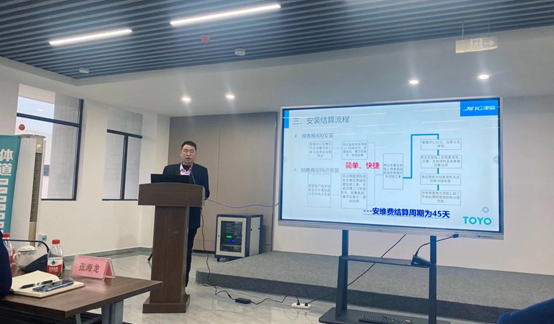 TOYO東洋空調(diào)售后部長黃昌華發(fā)表售后報告。他提出,集團(tuán)建立完善的全國售后服務(wù)體系,包括服務(wù)登記系統(tǒng)、服務(wù)查詢系統(tǒng)、智能驗收查詢系統(tǒng)、服務(wù)保障系統(tǒng),具有強(qiáng)大的時效性,旨為終端消費者提供終身質(zhì)保的服務(wù),堅定地維護(hù)消費者權(quán)益。