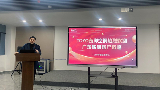 TOYO東洋空調(diào)廣東運營中心廣州幸福樹銷售有限公司執(zhí)行董事楊煌先生對此次參會的客戶表示熱烈的歡迎,并對集團(tuán)總部領(lǐng)導(dǎo)的支持表示感謝。他提出未來市場的變化瞬息萬變,機(jī)遇與挑戰(zhàn)并存,好的品牌、好的服務(wù)、完善的團(tuán)隊將是打贏市場必備的條件。TOYO東洋空調(diào)是國際品牌,在超級智能工廠以及售后服務(wù)體系的支持下,有信心也有決心服務(wù)好更多的經(jīng)銷商和消費者。