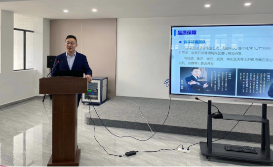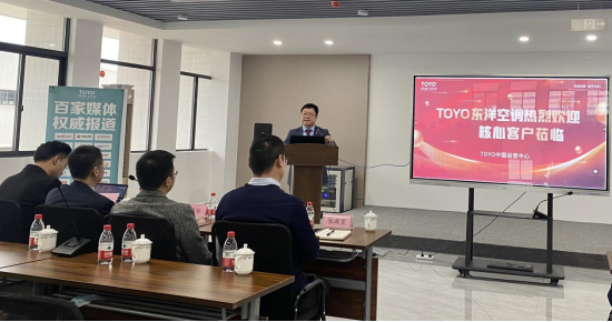 空調事業部總經理黃濤先生講解TOYO東洋空調工廠的硬實力優勢。多年來,TOYO東洋空調與優質供應商建立緊密的生態合作關系,形成更高效、更具市場優勢的產業鏈閉環。現代化的生產線和強大的產能實力為代理商開拓市場做好產品保障。企業肩負持續技術迭代的重任,對此,黃總表示以產品科研和產能作為基準點,以生產能力支撐產品的更新迭代。