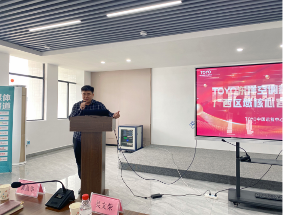 TOYO東洋空調全國營銷總經理張海龍先生為在場來賓講解如何拓展廣西市場。廣西市場發展潛力無窮,TOYO東洋空調將圍繞市場拓展卯足力,狠抓客戶終端、推廣基礎建設工作、品牌塑造、工廠設備,供應鏈體系的打造是集團發展的重要戰略部署,后期全力打造金牌服務,深度開拓廣西市場。