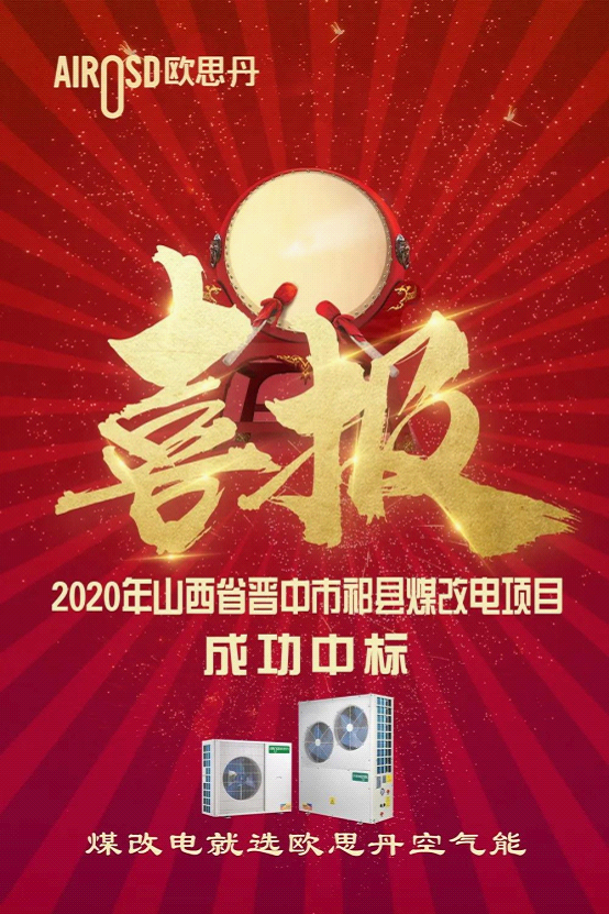 近日,歐思丹山西前線又傳來喜報。在山西省晉中市祁縣能源局公布的《關于2020年冬季清潔取暖煤改電改造項目工程中標公告》中,歐思丹憑借卓越的產品品質、優質的售后服務、出色的品牌口碑等綜合實力成功中標,助力祁縣打贏藍天保衛戰,為老百姓帶去節能環保、溫暖舒適的空氣源熱泵取暖。