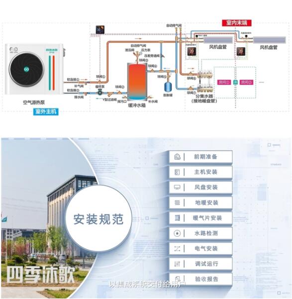 什么樣的空氣能才是真正令消費者放心的選擇?作為空氣能十大品牌,四季沐歌通過高品質、高標準、集成化的空氣能原裝集成系統給出了完美答案。在保證空氣能主機強大性能的基礎上,四季沐歌站在用戶的思維角度來考慮,通過強大的研發實力負責所有末端配件的選型、配置、集成和測試,確保系統的匹配性、質量和性能,產品出廠時已達到高標準。在用戶下單采購后,經銷商只需將空氣能原裝集成系統按照四季沐歌嚴格的工藝、工序、工法設計安裝即可,用戶也無需擔憂配件質量帶來的一系列問題。