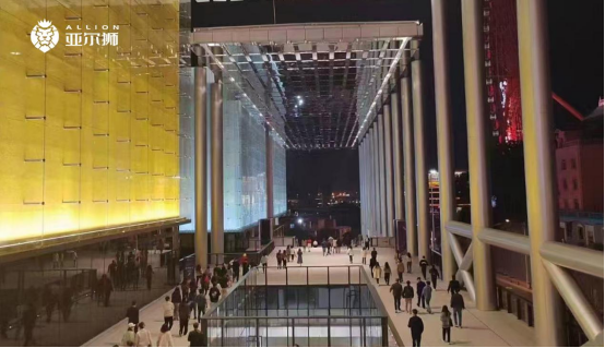 裝修風格為現代工業風格,整個空間給人一種明亮寬敞的感覺。大屋頂的屋面采用了雙層表皮,頂層采用透明玻璃,下層懸掛角度可調遮陽板,為公眾的室外活動提供了良好的光線條件。公眾的視野和活動范圍開闊,無論是晴空萬里,還是烏云密布,都能清楚地看到里面,實現自然與建筑的融合、包圍、不緊密。公眾沿著星光大道拾級而上,一路欣賞由亞爾獅打造的美景。