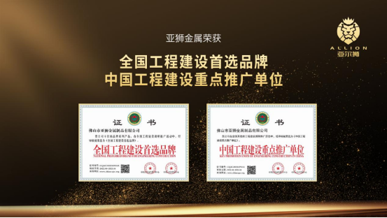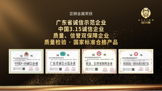 正是這份初心、信念,讓亞獅金屬屢屢受到政府、業界、經銷商和客商的肯定,不斷收獲榮譽。榮譽的加持,讓亞獅以更高的要求約束自已,在品牌建設上行穩致遠。