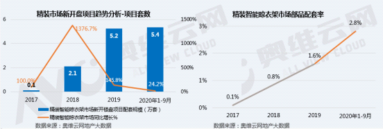 根據(jù)奧維云網(wǎng)(AVC)地產(chǎn)大數(shù)據(jù)監(jiān)測(cè)顯示:2020年1-9月精裝住宅市場(chǎng)配套了5.4萬(wàn)套的智能晾衣架,超出去年全年的配套量;與去年同期相比,同比增長(zhǎng)了24.2%。據(jù)了解,目前市場(chǎng)上的智能晾衣架主要以無(wú)線遙控、集成照明、快速風(fēng)干、智能烘干、光波殺菌、藍(lán)牙音樂、空氣凈化等多功能于一體,滿足了使用場(chǎng)景、家庭成員的多樣化需求。