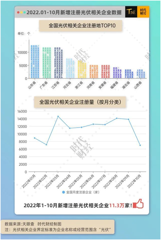 根據天眼查10月25日提供的數據,截至目前,中國共有光伏相關企業51.8萬余家,其中11.3萬家為2022年以來新增。