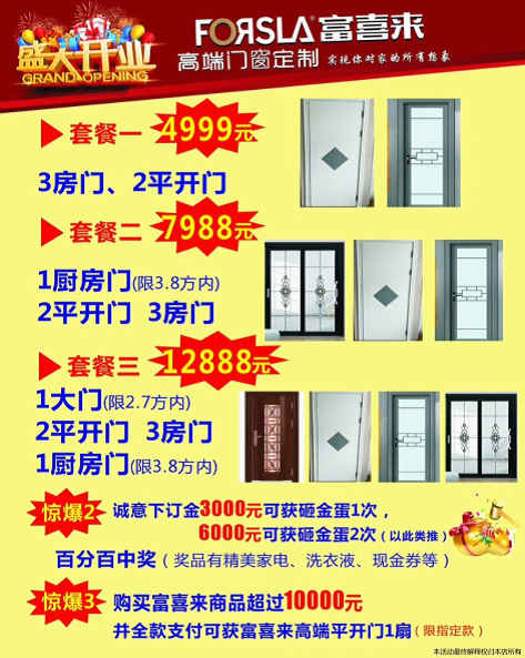 驚爆3:購(gòu)買富喜來商品超過10000元,并全款支付,可獲富喜來高端平開門1扇(限指定款)