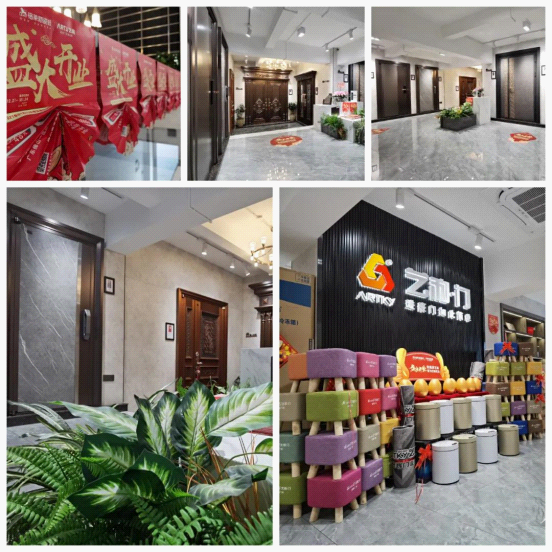 步入江門禮樂藝和專賣店,整潔明亮的展廳,以簡約現代裝飾風格,展示了銅門、韓式門、裝甲門,品種眾多,為您量身定制。快看,禮品展示區印著專屬LOGO的豪禮,更顯專業、用心!
