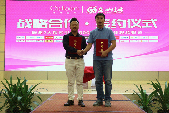 在充足的午休過后,下午場的會議正式開啟!首先迎來了深圳科琳國際品牌管理有限公司與品牌合作方盛世經典團隊代表的現場簽約儀式,雙方代表鄭重地在合約本上簽上大名并合影留念,這一刻贏得了滿堂喝彩與經久不息的掌聲。在我們可以預見的未來,科琳國際將轟轟烈烈地展開品牌營銷戰略規劃工作,通過各大媒體平臺全方位多角度地推廣品牌,升華品牌!