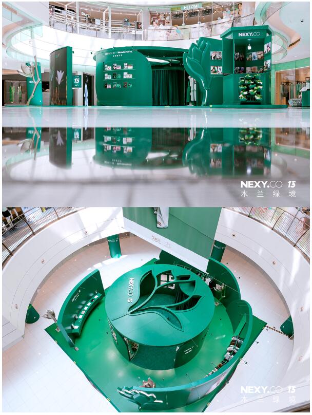 NEXY.CO(奈蔻)15周年《木蘭綠境》主題快閃店,自7月1日起先后登陸上海久光百貨、上海第一八佰伴商場、西安開元商城、南京河西金鷹世界、成都王府井購物中心,為都市注入一抹夏日綠意,吸引路人探索其中,聆聽沉淀十五載的智美故事。