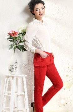 你知道嗎?紅色褲子加上白襯衫也能搭配出光彩奪目的色彩,吸睛率非常高。運用鮮明的色彩來搭配,休閑中又帶著女王的味道。非常吸引人,并不是所有女裝都可以這樣來搭配的,夢舒雅女裝在衣搭配方面非常適合職場女性的選擇高標準。