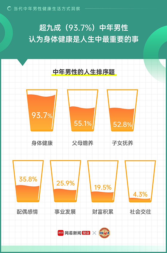 超九成中年男性認為身體健康比事業、財富更重要