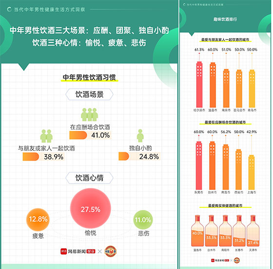 在國際家庭日即將來臨之際,網易健康聯合中國勁酒重磅發布《當代中年男性健康生活方式洞察》報告(下稱“報告”),通過3301份問卷,從當代中年男性的健康生活觀念、健康生活習慣、健康消費、健康飲酒四個方面展開深入調研和洞察,用數據還原中年男性的健康生活方式。