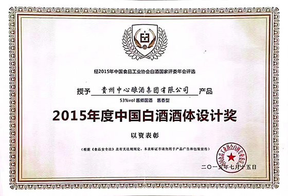 復雜的釀造工藝,造就了“醬鄉(xiāng)國”酒獨特的香味和韻味。“醬鄉(xiāng)國”酒體無色或微黃,清澈透明,無懸浮無沉淀,粘稠掛杯,具有醬香突出,口感幽雅細膩、回味悠長,空杯留香持久等特點。在2015年度白酒國家評委年會中,由貴州中心釀酒集團選送的“醬鄉(xiāng)國”酒獲得了“2015年度中國白酒酒體設計獎”,其總分在所有選送96個樣品中排名第一,同時也是醬香白酒組排名第一,力壓眾多傳統(tǒng)名酒。