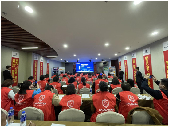 會上,歐沐莎總部特別圍繞新客戶招商、老客戶培訓、新品發布、市場新營銷戰略研討四大方面展開專題演講,以深入淺出的演講方式及引人入勝的演講魅力,為全場經銷商帶來一場理論技巧與案例經驗交匯的盛宴。