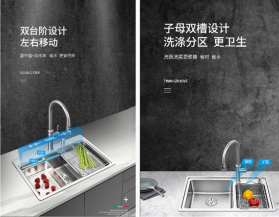槽體設計成臺階,有利于水槽清潔更加容易。為了讓水槽更加衛生和便利,新品設計成子母雙槽,實現洗滌分區,可以同時實現洗碗洗菜,即省時又省水。諾帝瑪從空間的角度出發,設計雙臺階水槽,能夠左右移動,盆中盆與瀝水架的移動,更加節省空間。