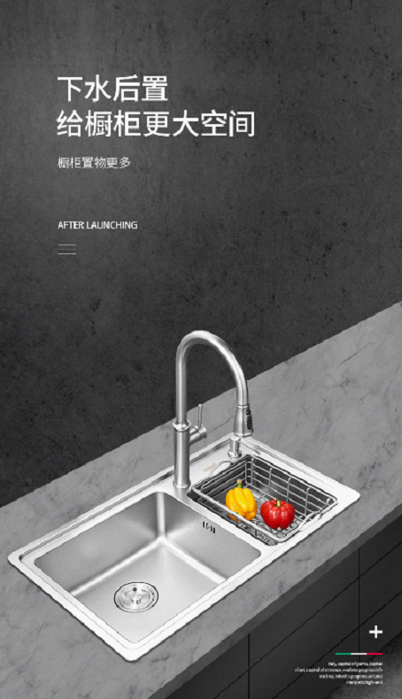 此款新品非常適合小戶型、或者廚房空間有限的家庭。諾帝瑪OH8247雙臺階單槽特意設計下水后置,給廚柜更大空間,充分提高廚房空間的利用率。