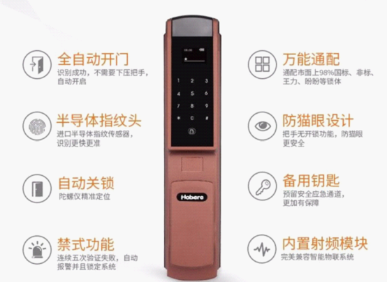 Hobere-H5全自動開門技術,快速識別,自動開門,免除了下壓把手的繁瑣,方便快捷;一鍵上鎖及自動上鎖技術,實現了手動、自動的自由切換;防貓眼技術,有效防范“不法之徒”通過貓眼進行盜竊,安全系數更高...... Hobere-H5各項技術成熟,安全穩定性能頗有保證。