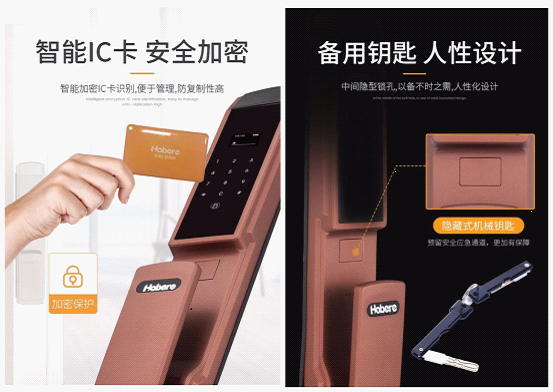 (3)刷卡開鎖:Hobere-H5為用戶提供創新研發的智能加密IC卡,其防復制性能好,安全系數高。