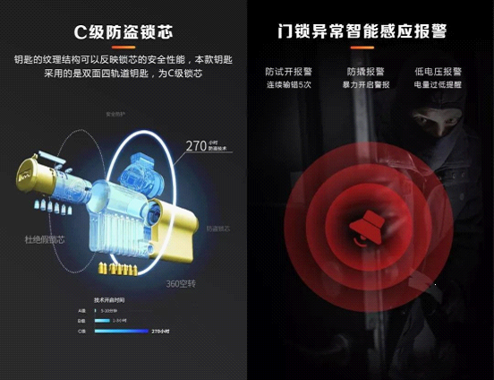 艾爾智能鎖采用目前防盜等級最高的C級鎖芯,鎖體采用非常堅固的304不銹鋼材質,給人一種安全可靠的穩定感,加上特殊的噴涂工藝,還具有抗氧化、抗腐蝕、耐酸堿、防潮防凍等特點。最為關鍵的是,艾爾智能鎖通過了黑客破解測試,有效防止小黑盒盜開門鎖。