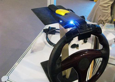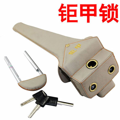 5、機械式加裝鎖:阻嚇作用。機械式加裝鎖一般有兩種類型,分別是加裝在方向盤上的T型鎖和加裝的排擋鎖。一般車主都會選擇使用這種。