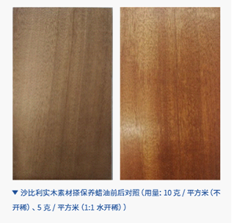 百慕水性木蠟油集拋光、清潔、保養于一體,被視為新一代木地板專用“保養劑”。木蠟油與木材表面粘結度高,增強木材表面硬度,使其不易開裂、起翹和脫落;爾后慢慢滲入到木材表層微小毛孔,滋養木材內部,保持天然木質的彈性、透氣性,同時不會影響木質地板的室內調濕作用;添上了木蠟油的木地板具備防水、防潮、防腐、防蟲等功能,防靜電、減少灰塵;其耐候性強、耐擦洗、干燥快,施工步驟簡單便于修復與翻新,使用壽命延長。