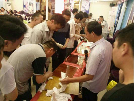 南昌營銷中心的工程師辛葉青,對公司的木器漆及擦色產品進行當場施工培訓,同時分享了新建區擦色做的比較好的師傅的案例。