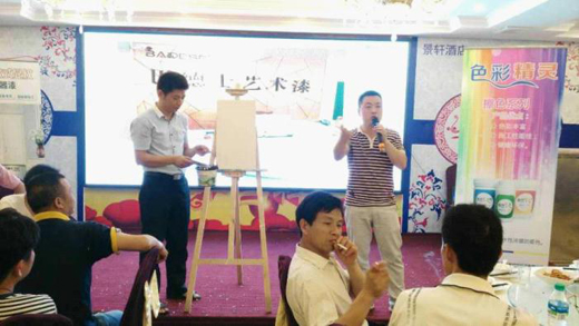 南昌營銷中心的藝術漆專員章金華給大家介紹藝術漆新工藝,現場教授施工。