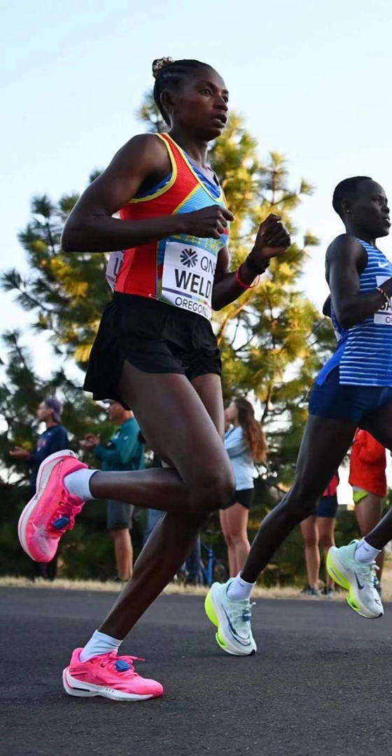 Weldu此前在韓國大邱創(chuàng)造國家紀(jì)錄時,穿著的是NIKE跑鞋,而從2022年4月開始,她上腳特步跑鞋開始訓(xùn)練,在經(jīng)歷過3個月的反復(fù)測試之后,最終選擇在世錦賽這樣最具含金量的賽場,首次穿著特步160X 2.0上場,就以2小時20分29秒再次刷新了由她自己保持的國家紀(jì)錄。