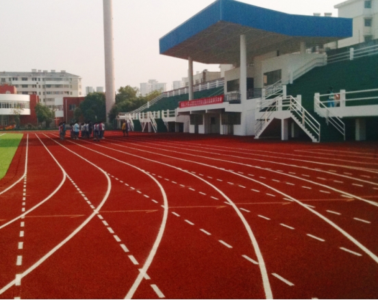 不會鼓泡:透氣型跑道底層采用聚氨酯膠水與彈性橡膠顆粒相結合,具有透氣功能,高溫下地基產生的蒸汽很快散發。蒸汽壓力無法聚集,所有不會產生鼓泡現象;