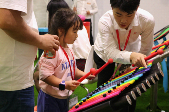 從“中國十大敲擊樂器品牌”笛馳敲擊樂的展位中,時常傳來美妙的樂器演奏聲,原來是笛馳的工作人員在親自示范、即興演奏樂器,讓現場嘉賓更好地感受到笛馳產品的魅力所在。同時,樂器演奏聲伴隨著觀展嘉賓的贊許聲、笛馳團隊的熱情解說聲,交織成一首美妙的品牌暢想曲。