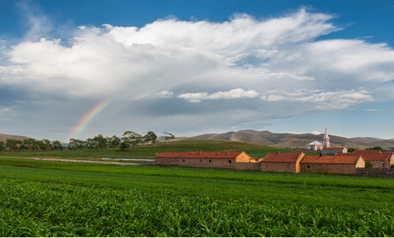東邊的小山坡架起一道彩虹