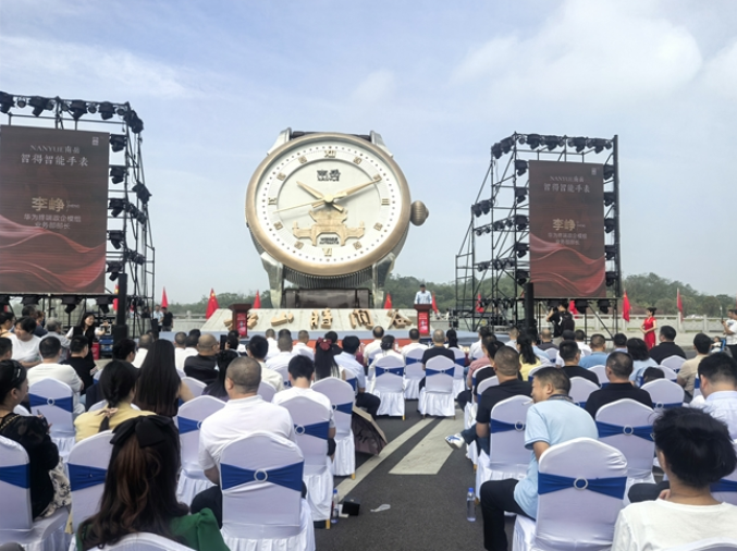 10月1日上午,“時光智韻、華夏芯聲”南岳智能手表全球發布會在湖南省衡陽縣船山時間谷鐘表產業園舉行,搭載華為智能機芯的首款智能手表“南岳·智得”正式亮相。衡陽市原副市長、衡陽市慈善總會會長彭玉明出席發布儀式,衡陽縣委書記孫浩出席并致辭,衡陽縣委副書記、宣傳部部長劉洋,衡陽縣人大常委會主任葉強見證發布。