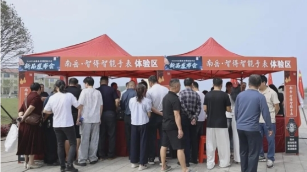 據悉,產品設計深度融合湖湘文化元素,表殼厚度13000微米對應南岳衡山1300米海拔,表帶篆刻72枚古錢幣呼應南岳七72峰,長帶10個孔位象征從勝利坊到祝融峰的10公里路程,實現了科技創新與文化傳承的有機統一。發布會現場,吸引許多顧客爭相體驗購買。