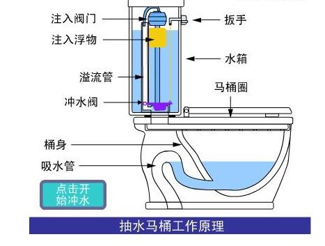 在這里我們可以看下馬桶的工作原理,大家看到這個圖相信已經大致上明白了。而下邊我們就來說一說馬桶選購要注意的有哪些細節性的問題。