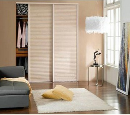 白色的墻紙,棕乳色的衣柜外觀,橫紋的拉門,讓衣柜與墻面更加貼服,衣柜的顏色跟木地板互輝映,整個臥室給人舒服之感。這樣的清校淡雅衣柜,是“冰淇琳”女孩的首選。
