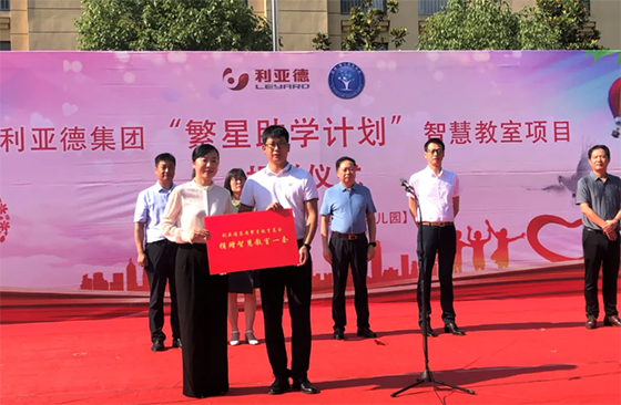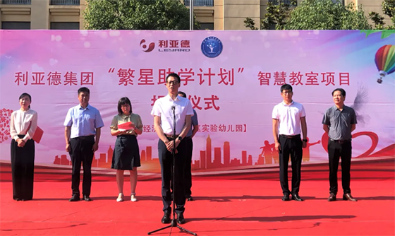 6月23日上午,“利亞德集團繁星助學計劃”智慧教室捐贈儀式在漯河經濟技術開發區實驗幼兒園舉行。漯河經開區黨工委書記吳玉培,利亞德集團執行總裁、利亞德(湖南)光環境文化發展有限公司總經理肖成軍出席并致辭。捐贈儀式由區黨工委委員、管委會副主任李紀主持。