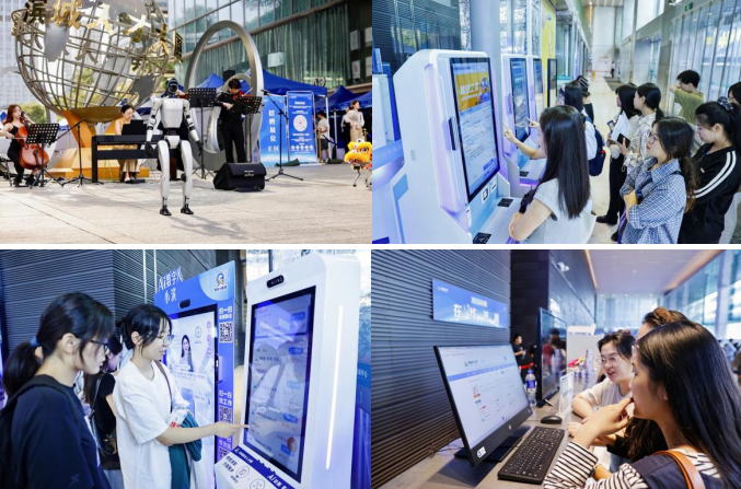 除此之外,現(xiàn)場(chǎng)還設(shè)有機(jī)器人、機(jī)器狗表演。伴隨著動(dòng)感的音樂(lè),機(jī)器人和機(jī)器狗整齊劃一地做出招手、作揖、跳躍、旋轉(zhuǎn)等動(dòng)作,除吸引了現(xiàn)場(chǎng)人才,還有許多市民紛紛駐足,拿出手機(jī)記錄下精彩瞬間。